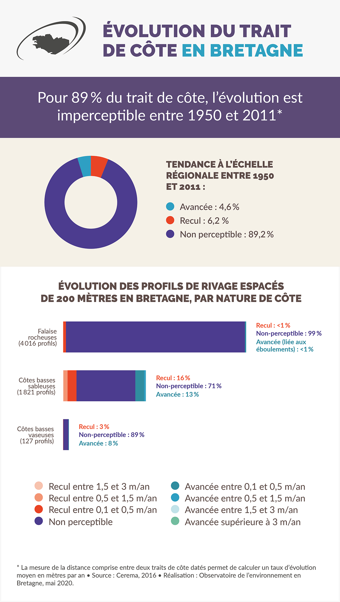 Pour 89 % du trait de côte, l'évolution est imperceptible entre 1950 et 2011.