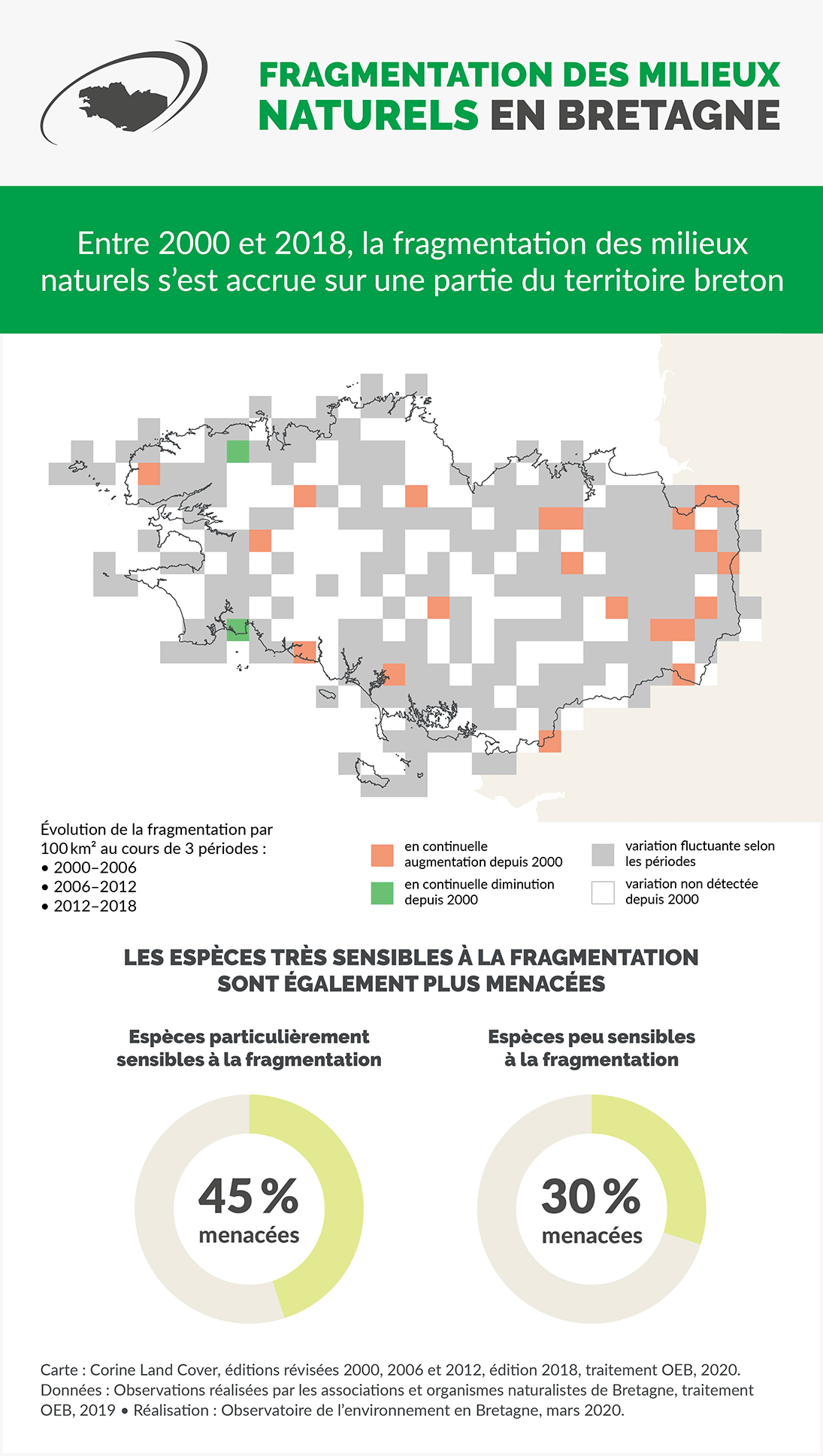 Entre 2000 et 2018, la fragmentation des milieux naturels s'est accrue sur une partie du territoire breton.