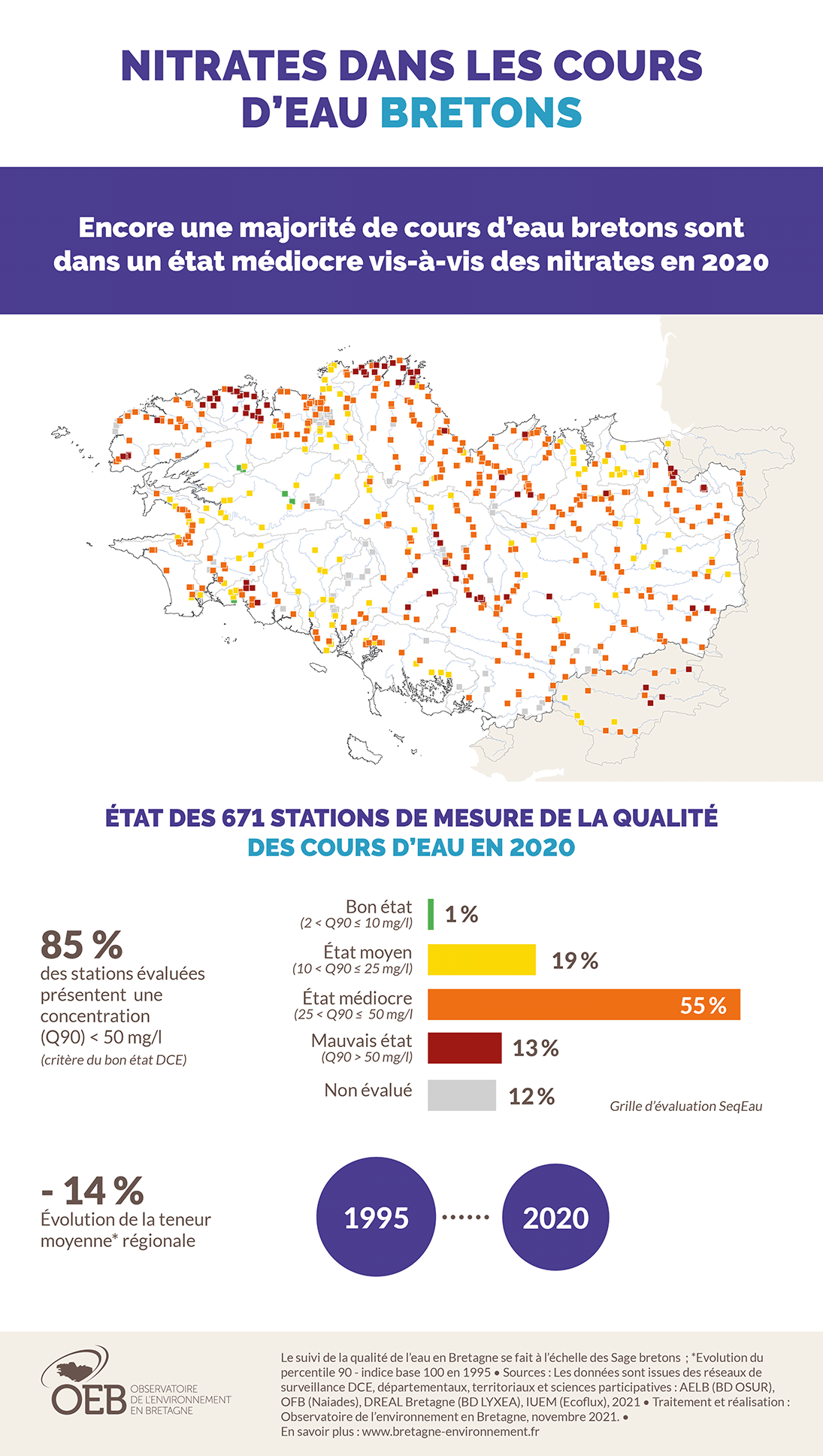 Encore une majorité de cours d'eau bretons sont dans un état médiocre vis-à-vis des nitrates en 2020.