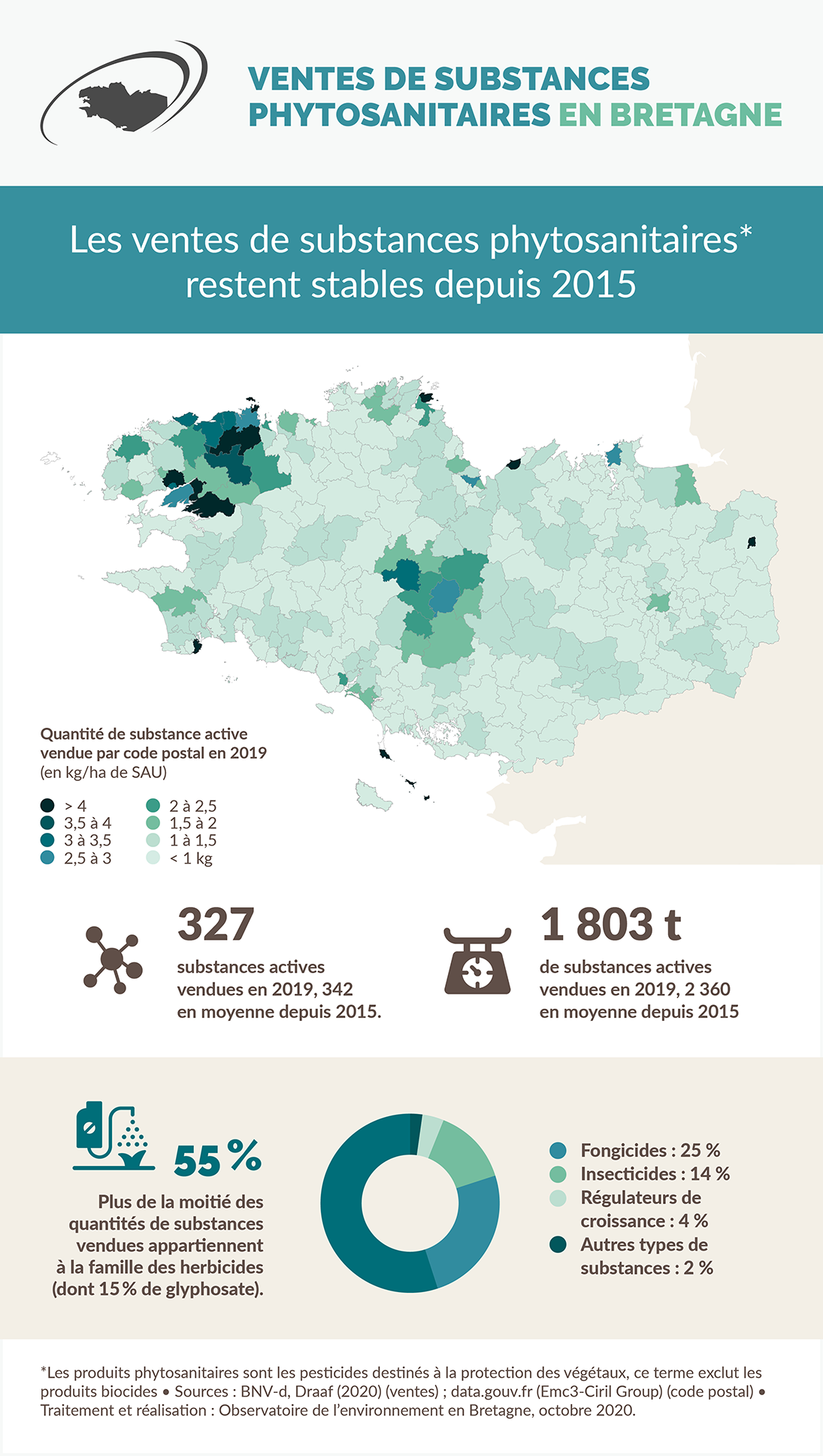 Mise à jour : 18 novembre 2020 Niveau de lecture eau agriculture industrie Les ventes de substances phytosanitaires restent stables depuis 2015. Télécharger Emmanuèle Savelli Cheffe de projet éditorial et vulgarisation Pôle communication 02 99 35 45 83 Organismes associés Direction régionale de l'alimentation, de l'agriculture et de la forêt de Bretagne (DRAAF) Chambre régionale d'agriculture de Bretagne